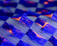 This interest drew me into Maggie Orths work, pictured below. In this piece she using LEDs to create patterns of light throughout the woven cloth. She used a double cloth structure within the weave and conductive yarns. When someone touches the grey areas light is transmitted through the cloth and the colour of the back hidden structure is revealed.
