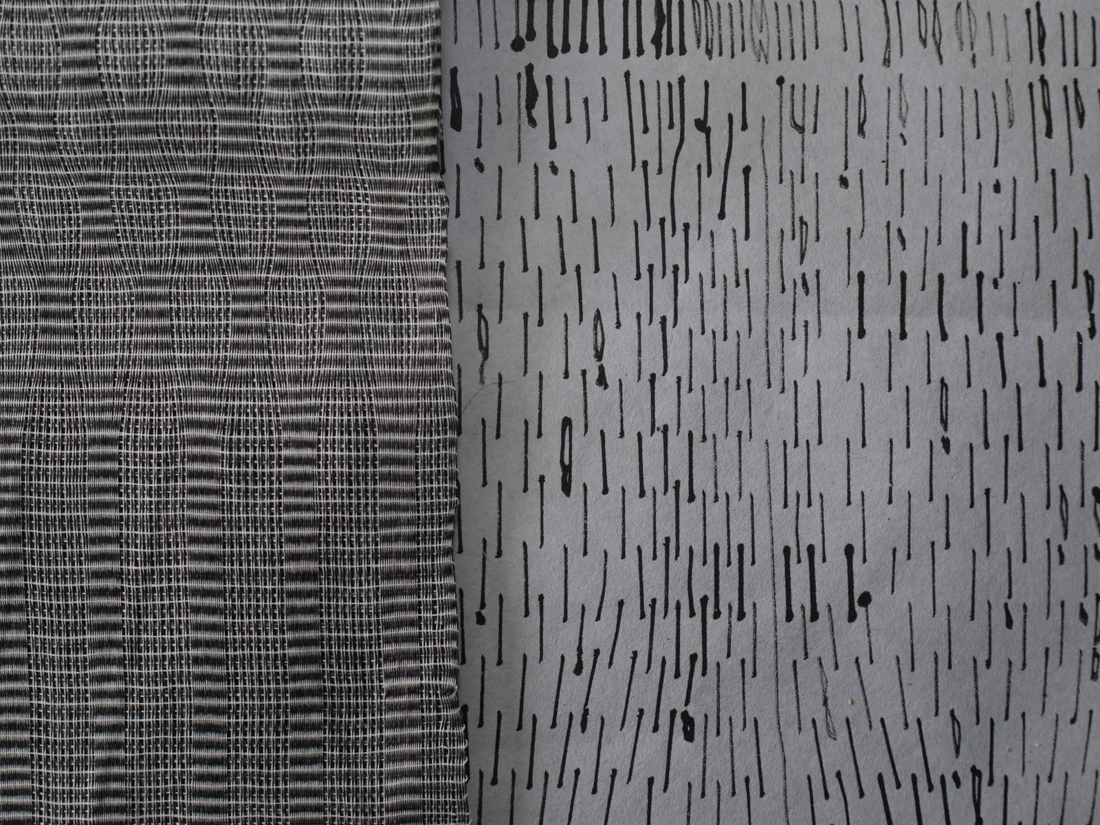 I am currently exploring weaving multiple cloths on my loom and ways of making them three-dimensional. Below are photos of the weave on my loom where I am weaving and interlacing four cloths.