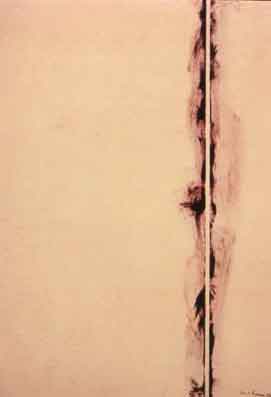 Barnett Newman was an american colour field artist and abstract expressionist. I saw the top two at the Tate, the paintings are much more vibrant in real life, the intense coral colour inspired my current work greatly. At the Tate they were displayed next to each other where they work as a set, the colours in the left one are present in the right. I am not sure why I like these paintings, after all they are just a few stripes. I think this is their beauty. The colour drew me to the top two and the minimal texture is intriguing in the bottom. I am also interested in these painting because of their weave qualities. My uni work is centred around weave which, I see in these paintings. Weave is rooted in verticals and horizontals.