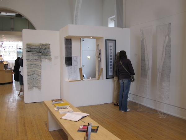 Today I went to the Warp and Weft exhibition at the Smith’s Row gallery, Bury St Edmunds. It was a very inspiring exhibition, I loved the contemporary and 3d approaches to weaving. Studying weave, I know that generally there is not much known about weaving and it was great to see and exhibition dedicated to this. It is this 3d approach to weaving that was most interesting for me, I have only briefly experimented with collapse weave and a double cloth, and something I would like to develop within my own work. I also want to do very textured weaves, it is the textures that draw have me into textiles.